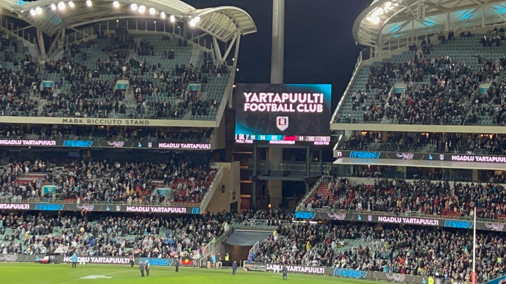 Both Narrm (Melbourne) and Yartapuulti (Port Adelaide) ran out onto Adelaide Oval to the tune of their club songs, sung in their respective Traditional languages.