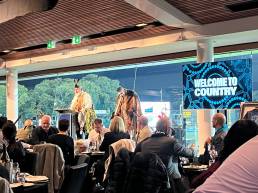 Kaurna Elder Uncle Mickey Michael OBrien and Isaac Hannam led a moving Welcome to Country before both teams exchanged traditional gifts.